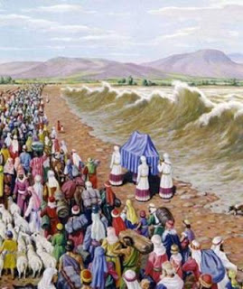This is similar to the crossing years before through the Red Sea except this was 40 years later and they had the Ark of the covenant and appointed priests from the tribe of Levi to go before them.